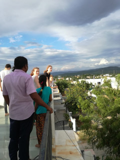 Am Mittwoch ging es zur großen Diwali-Feier abends ins Aarti Village. Als ich dort eintraf, waren die Kinder dabei alles für die Festlichkeiten vorzubereiten. Es wurden hunderte von Kerzen angezündet, gebetet und natürlich musste ein Haufen Bilder geschossen werden. Gerade als alle Lichter zu brennen begonnen hatten stieß Sandhyamma mit ihrer Familie dazu. Es wurden Feuerwerksartikel an jedes Kind verteilt und es wurde mit dem Knallen begonnen. Wie schon in der Schule zwei Tage zuvor, brach auch hier das komplette Chaos aus. Die Kinder standen direkt unter den Fontänen, sprangen auf den Feuerkreiseln rum und steckten die kleinen Raketen komplett schräg in den Sand, sodass sie auf andere Kinder flogen. Die Erwachsenen interessierte dies jedoch eher weniger und fanden viel mehr Freude an den richtigen Böllern. Es war für die Kinder zwar ein sehr schöner Abend, aber mir ist klar geworden, dass ich Diwali nur einmal mit erleben muss. Zu mindestens nur einmal in einem Kinderheim. Trotz des lässigen Verhaltens und dem übermütigen Umgang mit den Feuerwerksartikeln ist jedoch glücklicherweise niemandem etwas schlimmes passiert.