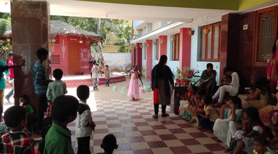 Zu Beginn des Monats wurde eine Woche lang Gandhi Jayanthi (Gandhi‘s 150. Geburtstag) gefeiert. Wobei „gefeiert“ hier nicht westlich zu verstehen ist. Es gab keine große Party mit Musik und vielen Leuten. Stattdessen gab es jeden Tag activities rund um Gandhi. Da nicht nur die Schüler etwas über Gandhi lernen sollten, gab es auch für die Lehrer Aktivitäten wie Aufsätze schreiben, ein Wissens Quiz und Gesangs- und Tanzwettbewerbe. Logischer Weise konnten die Lehrer nicht an ihren Aktivitäten teilnehmen und gleichzeitig die der Kinder vorbereiten und durchführen, weswegen wir Freiwilligen zu fünft anboten in dieser Zeit Aktivitäten und Spiele mit den Kindern zu machen. Schnell bekamen wir die Erlaubnis der begeisterten Leiterin der High School, welche uns im gleichen Zug erklärte, dass wir jedoch nur an drei Tagen Aktivitäten planen sollten.