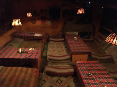 Nach einer sieben stündigen Fahrt, kamen wir dort am späten Freitagabend an. Da wir so spät kamen, konnte man von den Ruinen nichts mehr sehen und die meisten Geschäfte waren schon geschlossen. Trotzdem gingen wir uns die Umgebung ansehen und waren hin und weg von dem Flair Hampi’s. Die Häuser waren dicht an dicht gebaut und die meisten hatten gemütlich beleuchtete Balkons oder Dächer, welche zu Restaurants oder Bars umgebaut worden waren. Dabei fanden wir eine noch geöffnete Bar, bei der wir uns einen regionalen Lassi teilten, welcher wohl eine Art Spezialität dort ist.