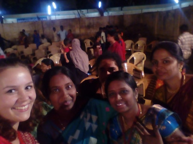 Am zweiten Wochenende im Februar ging es für uns nach Chirala, eine kleine traditionelle Stadt, welche etwas weiter östlich in Andhra Pradesh liegt. Dort waren wir, von dem Telugu Lehrer zwei Mitfreiwilliger, auf die Hochzeit seiner Schwester eingeladen worden. Wir kamen nach guten sechs Stunden Autofahrt am Nachmittag des 08. Februars an. Da die kleine Stadt direkt am Meer liegt, konnten wir es uns nicht nehmen lassen vor dem bevorstehenden Henna Abend noch einmal einen Abstecher zum Strand zu machen und die Meeresluft und das Rauschen der Wellen zu genießen. Anschließend düsten wir los, um rechtzeitig im Haus der Braut einzutreffen. Nachdem wir uns viele Bilder, welche von der Verlobung des Paares erzählten, angesehen hatten und unsere Hände schwungvoll verziert waren, endete der Abend bereits schon wieder und wir fuhren in eine nahegelegene Unterkunft, um für den nächsten Tag fit zu sein. Denn an diesem sollten wir schon früh morgens zurück im Haus sein, um die zeremonielle Segnung der Braut nicht zu verpassen. Jeder der anwesenden Hindus ging zu ihr und rieb ihr zunächst etwas Öl auf den linken Unterarm. Anschließend wurde das Gesicht der Frau mit einer gelben Kurkumapaste bestrichen und auf den Kopf wurde gelb gefärbter Reis gerieselt. Die ganze Prozedur wurde nicht nur an der Braut, sondern auch an einem jüngerem Mädchen verübt. Dies ist bei indischen Hochzeiten üblich und soll glückbringend wirken. Nachdem alle ihren Segen beteuert hatten, wurden wir darum gebeten die Braut und das Mädchen mit Blumenköpfen zu bewerfen. Einen richtigen Segen sollten wir jedoch nicht geben, da wir einer anderen Religion angehören.